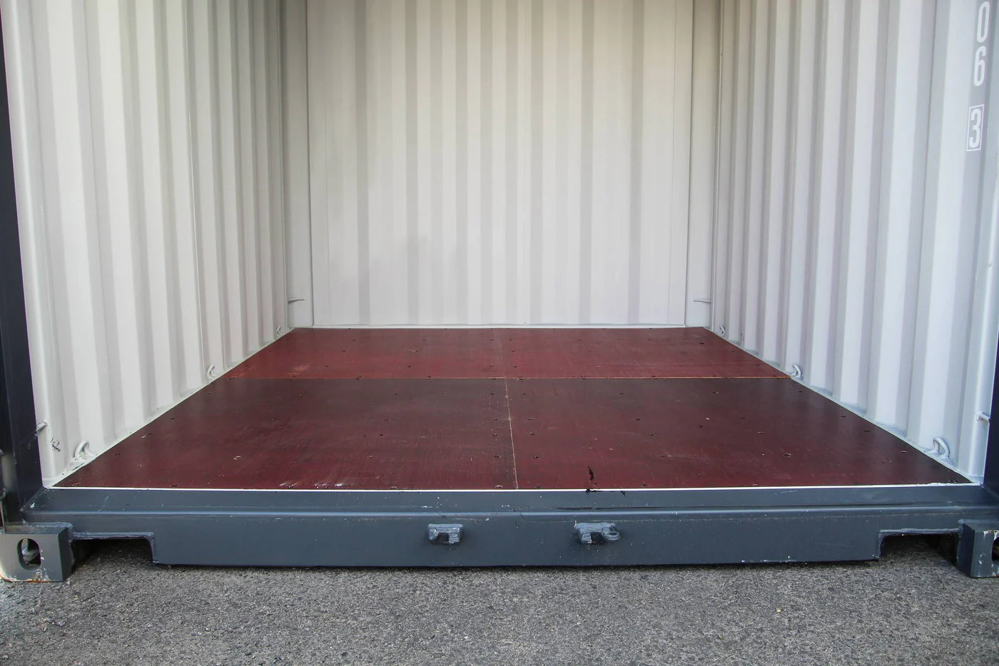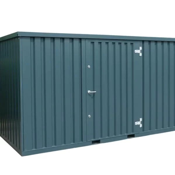 El contenedor tiene puertas dobles en un lado, con barras de cierre y protección de cerradura. También tiene pasos para carretillas elevadoras y un suelo sólido de madera contrachapada de 28 mm o bambú. La ventilación se realiza mediante válvulas integradas. El color estándar es un elegante gris grafito RAL 7024.