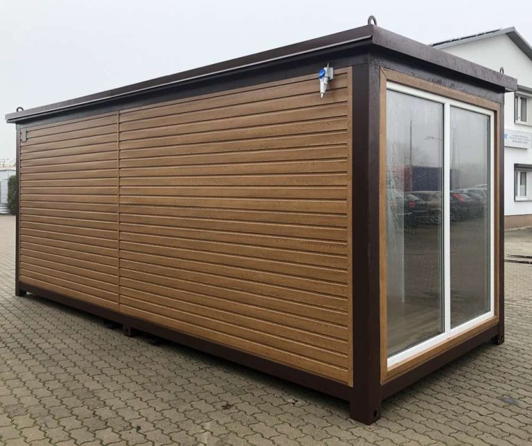 Contenedor de oficina de diseño de madera de 6×2,40 metros, 2,70 metros de altura.